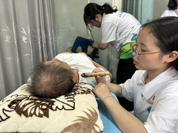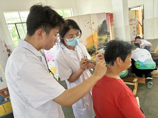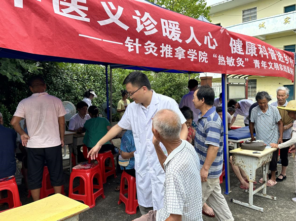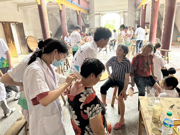 江中新闻网讯(通讯员 熊水明)“中医义诊暖人心,健康科普进乡村”。6月28日-7月1日,针灸推拿学院“热敏灸”青年文明实践服务队邀请附属医院中医师依次在樟树市观上镇潭埠街、镇卫生院、夫田村、横里村和下聂村开展针灸、艾灸、拔罐、刮痧、推拿等独具学院特色的义诊服务活动。
