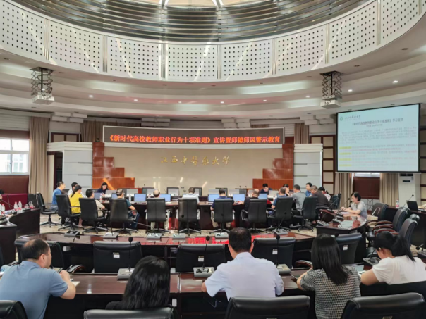 江中新闻网讯(通讯员 桂少波)7月18日上午,直属机关党委在行政楼二楼多功能会议室开展《新时代高校教师职业行为十项准则》宣讲暨师德师风警示教育,机关各党支部支委和党员代表参加。
