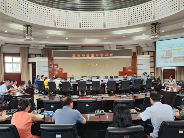 江中新闻网讯(通讯员 桂少波)为进一步推进学习贯彻习近平新时代中国特色社会主义思想主题教育走深走实,积极落实贯彻学校暑期主题教育工作方案,7月18日上午,直属机关党委在行政楼二楼多功能会议室召开主题教育机关干部集中学习会。