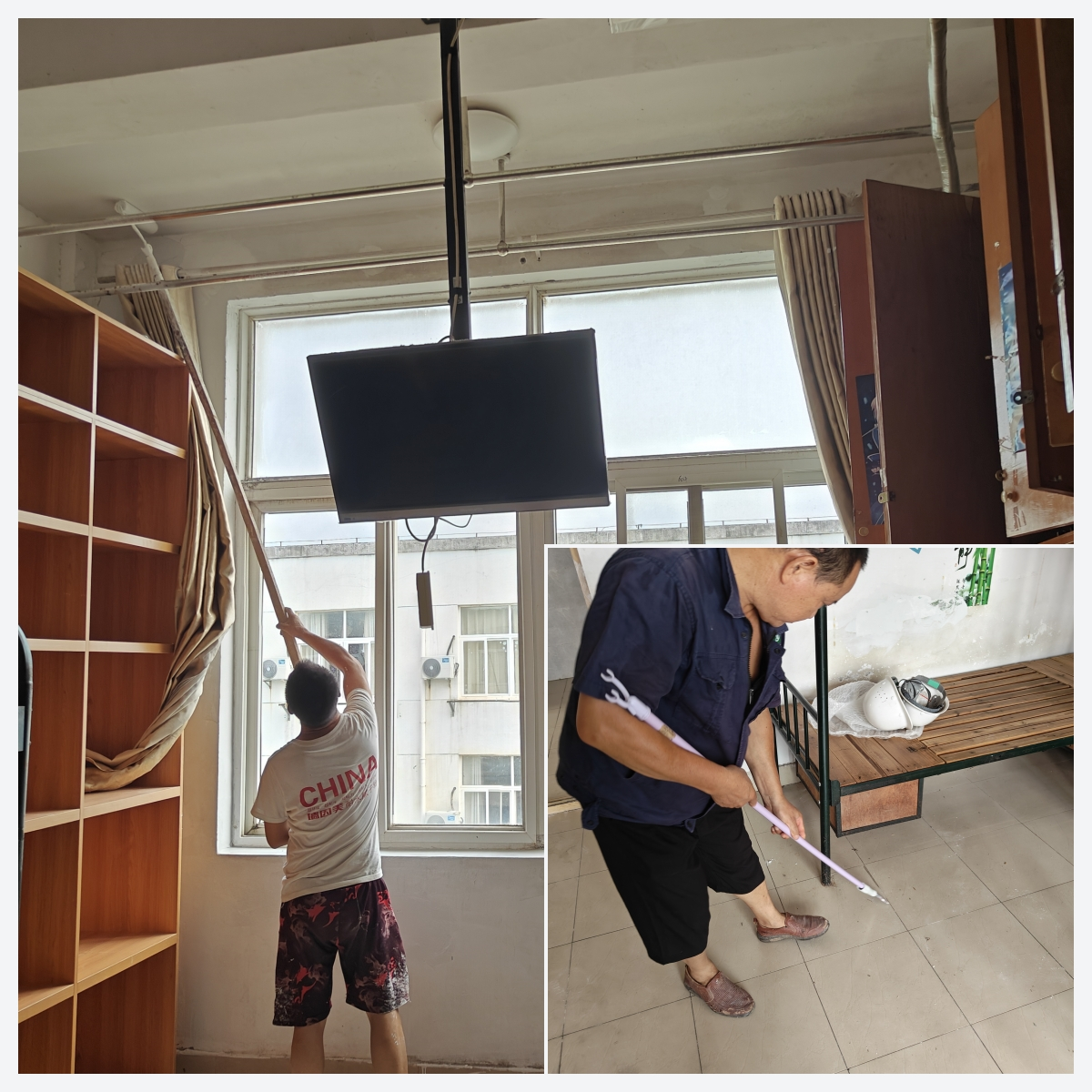 本次新生宿舍维修工作涉及南、北校区共23栋学生宿舍,845间寝室。维修内容包含水电、门窗、粉刷墙体、家具、地砖、防水等多方面。为进一步提高维修工作效率,后勤修缮中心制定了《2023级新生寝室维修工作安排表》。检修工作分为三个阶段进行,第一阶段,对每间新生宿舍进行细致的排查,制定问题清单。第二阶段,维修人员根据问题清单,对宿舍进行维修整改。第三阶段,对已经维修好的寝室进行验收复查,并对验收合格的宿舍进行卫生清洁,确保每间新生宿舍干净整洁。