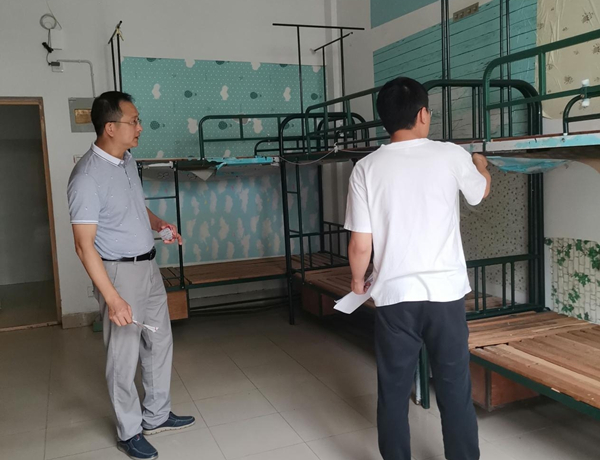 开学前夕,为确保新生顺利开学,学院党委负责人带领新生辅导员、班助多次深入新生宿舍,对宿舍内部设施、环境卫生、安全情况等进行全面排查,遵循好“细、准、实”的工作要求,对于设施不完善的宿舍及时报修,并将《学生手册》、床位卡片等提前放在指定位置,为新生入学报到保驾护航。