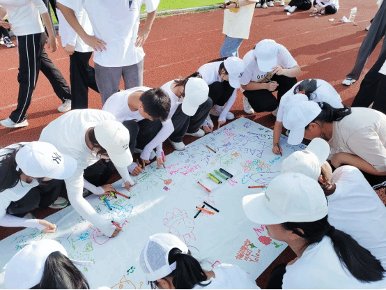 各新生军训方阵,在“心灵乐梦团”师生志愿者带领下,依次进行了“你拍拍,我拍拍”“敲鼓传情”“手势舞”等活动。游戏时,新生们踊跃参与,在团队合作中感受相互沟通、配合时产生的强大能量,体会团队合作带来的愉悦和不易,感受到团队成员之间的情谊。最后,同学们自发手拉手齐唱《相亲相爱的一家人》《歌唱祖国》等歌曲,在欢声笑语轻中结束团辅活动。