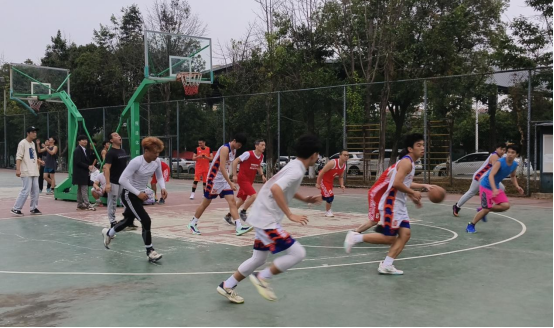 比赛在裁判清脆的哨声中正式开始,高高抛起的篮球激发了大家的运动热情,比赛一开始,参赛双方就迅速投入比赛,尽展赛场英姿。赛场上两方都竭尽全力,一次又一次地向对方篮筐发起进攻。华丽的转身突破、精彩的投篮、完美的配合、巧妙地防守,赛场上拼搏的参赛队员为我们展现了一场酣畅淋漓的篮球比赛。赛场下观众加油声、呐喊声以及欢呼声也不绝于耳。在经过紧张的比赛后,学生队以43:40的微弱优势赢得比赛胜利。