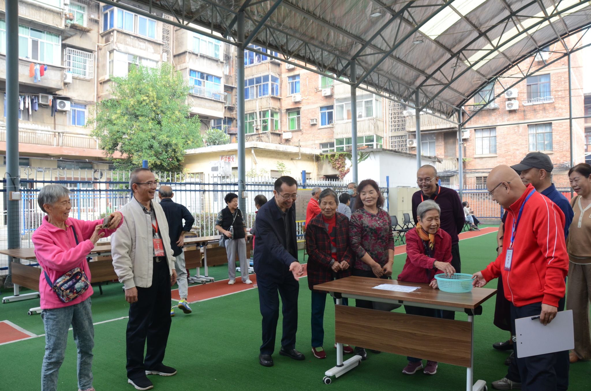 江中新闻网讯(通讯员 周炜)10月27日,学校第十一届运动会阳明校区分赛场(离退休教职工组)在阳明校区门球场和老同志活动室举行。学校党委副书记章德林出席运动会并看望老同志。