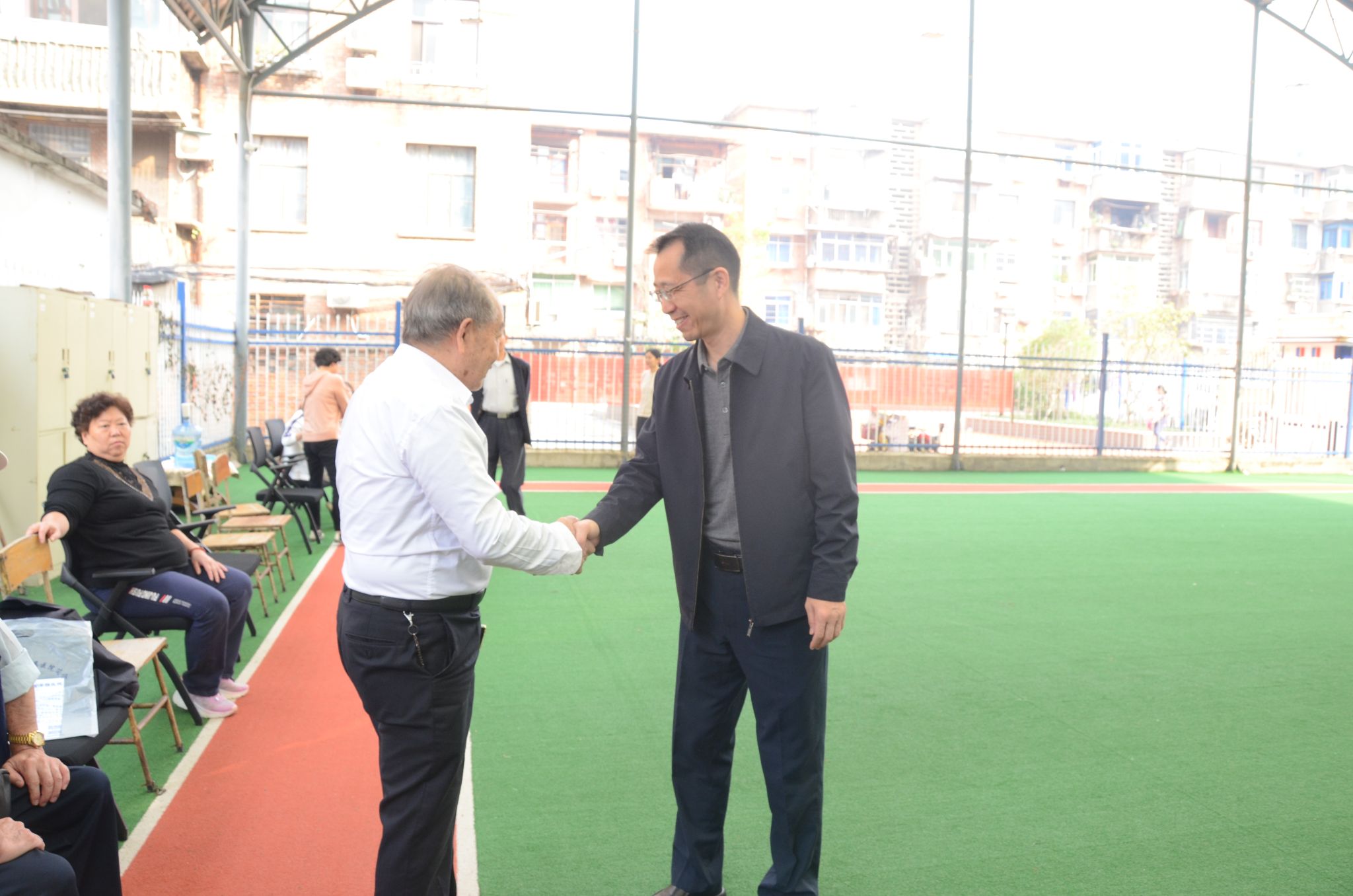 运动会上,章德林与老同志亲切交流、握手、合影,驻足观看运动项目并不时地给老同志加油鼓劲。他代表学校感谢老同志对学校的关心和支持,鼓励老同志保持老骥伏枥、老当益壮的健康心态和进取精神。