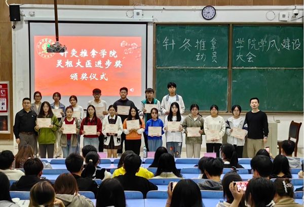 针灸推拿学院“灵枢大医进步奖”评选活动自今年初启动起,得到了全院各班级的积极响应。本次评选结合各班级晨读平均分、课堂学习平均分和期末考试全班平均分,共评选出6个“优秀学风班集体”,同时结合同学们的学习成绩在班级排名的进步程度,共评选出25个“灵枢大医进步奖”。