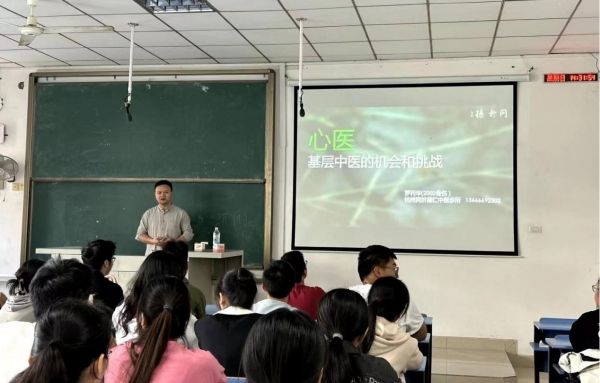 罗利华校友首先向同学们讲述自己毕业后的就业经历和工作感悟,并以“心医——基层中医的机遇与挑战”为主题,围绕“心医”“基层中医”“机遇”“挑战”四个板块展开交流。在讲座互动环节,同学们提出当前在学习阶段存在的疑惑与困扰,罗利华结合自身经历一一答疑解惑,并教导同学们要勤奋好学,刻苦钻研,把握并珍惜当下。