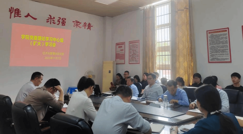 江中新闻网讯(通讯员 吴剑)11月3日下午,经济与管理学院召开党委理论学习中心组(扩大)学习会专题学习习近平总书记考察江西重要讲话精神。学院党委书记主持会议,领导班子成员、党支部书记、全体教职工党员、学生党员代表参加学习会,党外教职工列席。