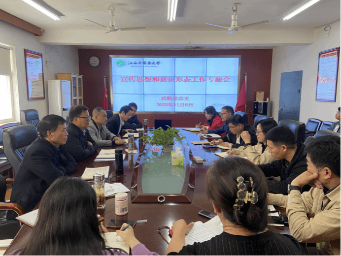 江中新闻网讯(通讯员 童丹青)11月6日上午,后勤保障服务中心召开宣传思想和意识形态工作专题会议,会议由后勤党总支书记主持,后勤副主任以上管理人员参加会议,