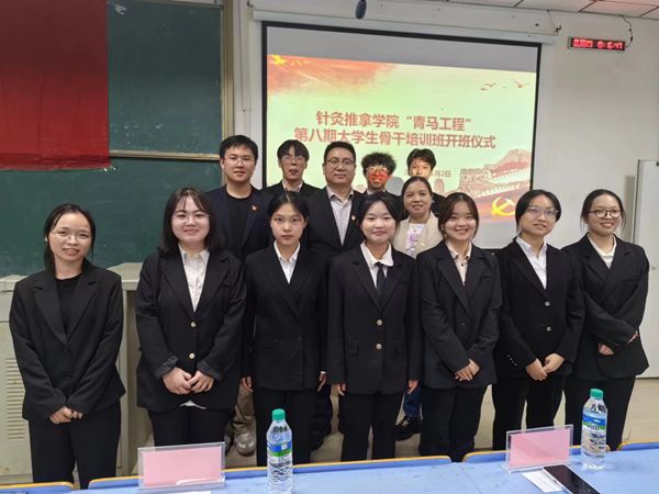江中新闻网讯(通讯员 张荣海 李静 黄苏琴)为深入学习贯彻党的二十大精神,落实团中央关于加强“青年马克思主义者培养工程”的指示精神,11月2日,针灸推拿学院于立德楼1211教室举行第七期大骨班结班典礼暨第八期大骨班开班仪式。学院学生工作负责人、院团委学生会指导老师及70余名大骨班学员参加。