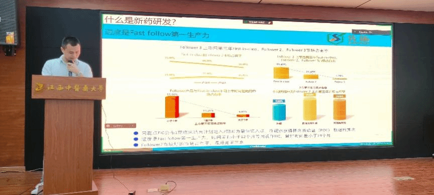 罗明博士以“新药研发简介”为题,围绕什么是新药研发、为什么要做新药研发、怎样做新药研发等三个部分的内容进行了详细地讲解,并分享了一系列国内新药研发案例与个人工作心得。通过罗明博士的报告,使同学们熟悉了新药的分类、新药研发的流程、新药研发的投入及风险等知识,纷纷表示受益良多。