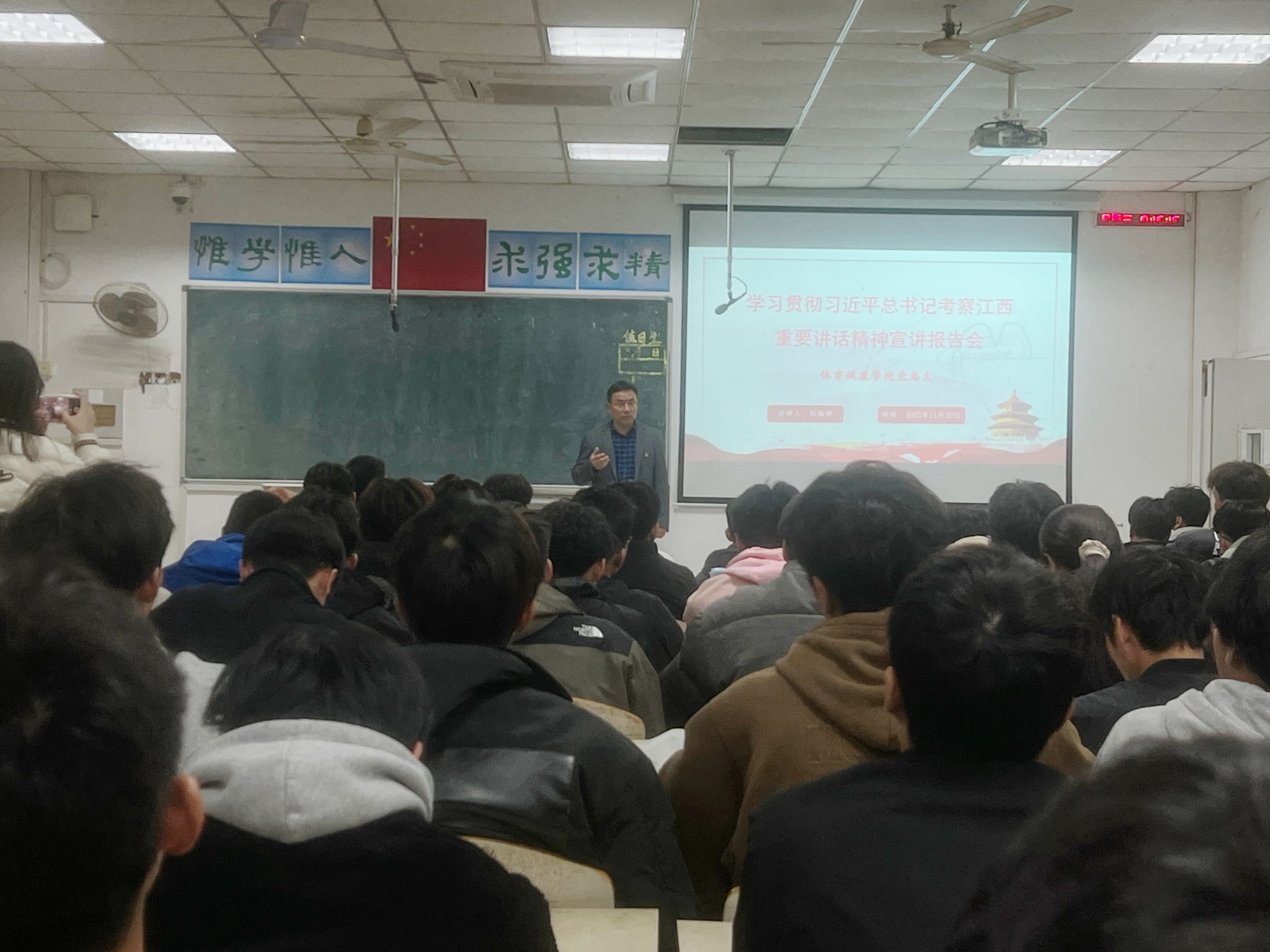 宣讲会上,学院党总支书记从深刻把握习近平总书记再次考察江西的重要意义、深刻把握习近平总书记对江西发展提出的新的战略定位、深刻把握习近平总书记对江西发展提出的任务要求等三大方面,对习近平总书记考察江西重要讲话精神进行了集中阐释和系统讲解。