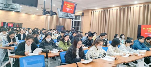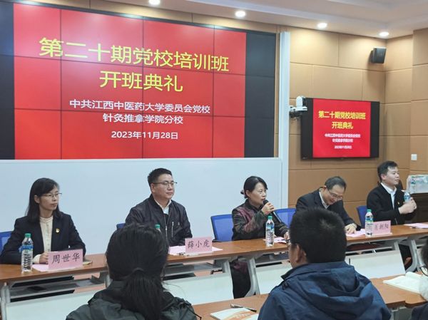 江中新闻网讯(通讯员 周世华 李静 周悦)为进一步学习贯彻习近平总书记考察江西重要讲话精神,切实提高入党积极分子、发展对象和中共预备党员的政治素质和理论素养,11月28日,针灸推拿学院党委举办第二十期党课培训班开班典礼暨开班第一课。学校党校负责人,学院党委负责人、学生工作负责人、学生党总支相关工作负责人出席,来自学院的113名预备党员、发展对象和入党积极分子参加了此次培训。