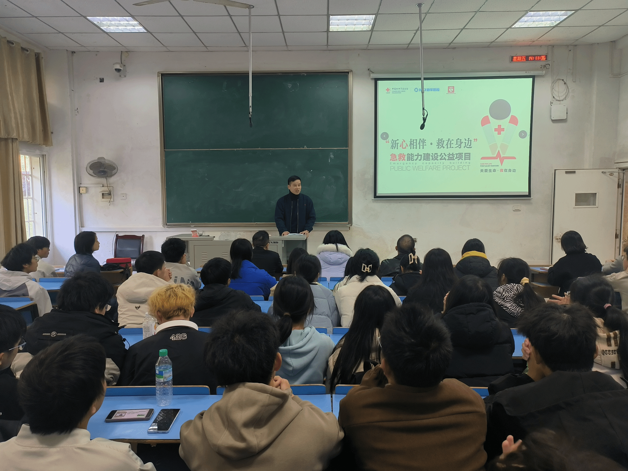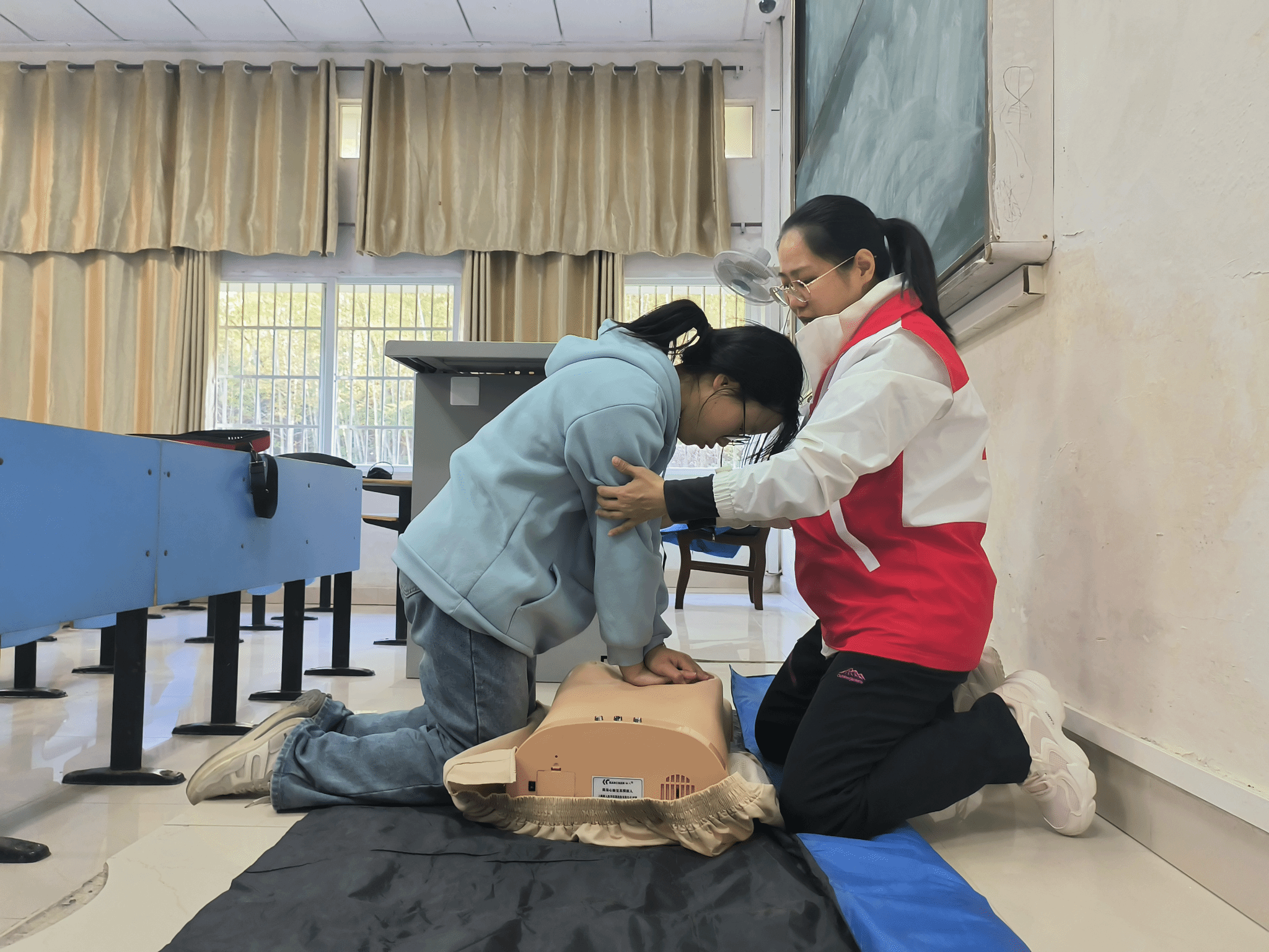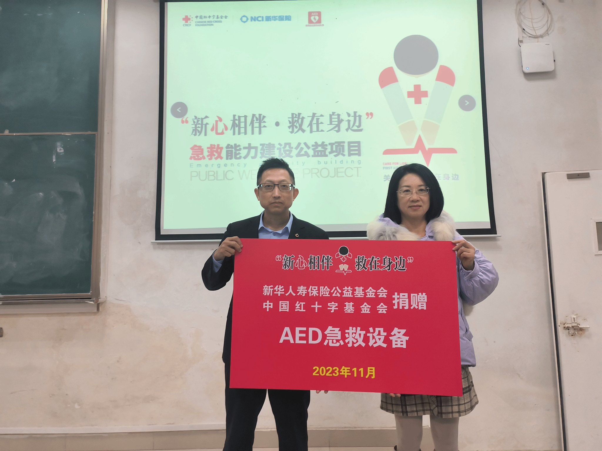 本次活动的主题是“AED捐赠仪式及培训”,新华人寿江西分公司为我校捐赠一台AED并为我校学生开展急救技能培训。通过本次活动,一方面进一步推动校企协同育人的进程,另一方面对非医学专业的师生进行心肺复苏科普。