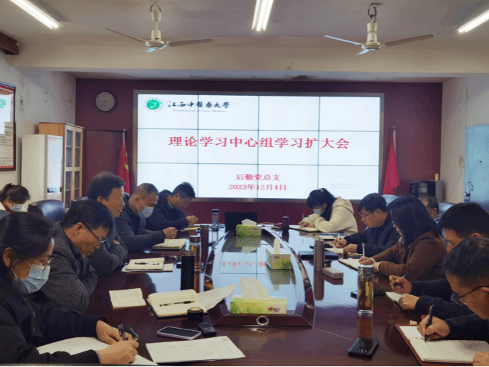 江中新闻网讯(通讯员 童丹青)12月4日,后勤党总支召开理论学习中心组学习扩大会,专题宣讲习近平总书记考察江西重要讲话精神。后勤全体党员、副主任以上管理人员参加会议。