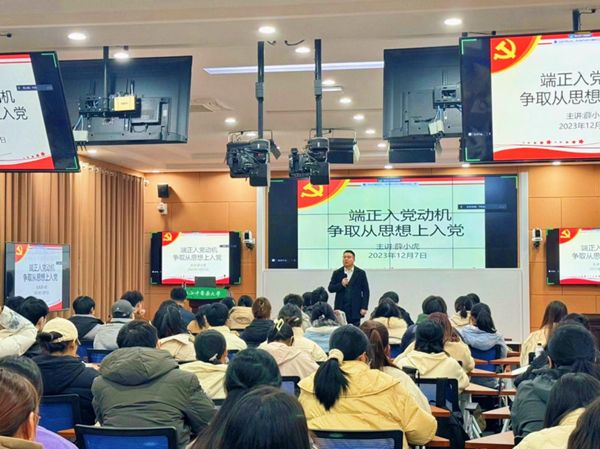 时代呼唤担当,青年一代是民族的希望。学院学生工作负责人主要从大学生入党的首要条件、什么是正确的入党动机、如何树立正确的入党动机以及如何成为合格的大学生党员等方面进行了深入的讲解,并指出思想是行动的先导,动机是行动的驱动力,正确的动机是正确行动的精神动力,有了正确的入党动机,才能产生正确的入党行动。