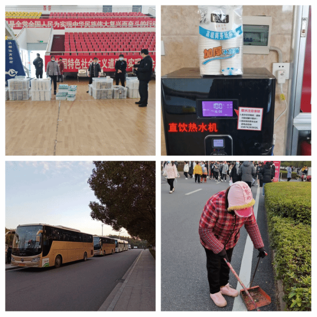 二、温暖护航,助力考研学生上岸。为考生驱寒保暖,后勤精心熬制了姜汁红糖茶,免费提供给考生饮用;在各考试楼栋还放置了饮水卡和一次性杯子,免费提供直饮热水;和公交公司联系公交车为考生提供便捷的出行服务;保障了阳明、抚生校区考研学生顺利往返湾里校区考试;