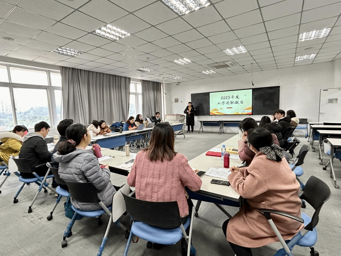 述职会上,各辅导员从自身工作实际出发,围绕带班总体情况、思想政治教育、党团和班级建设、学风建设、学生日常事务管理、特色工作、个人学习发展以及所负责的专项工作等方面对2023年的工作进行了系统总结,利用详实的数据和图片,全方位多角度地展现了扎实的成绩。同时,针对工作中存在的问题与不足,实事求是地总结经验,并积极规划下一年的工作目标和发展方向。