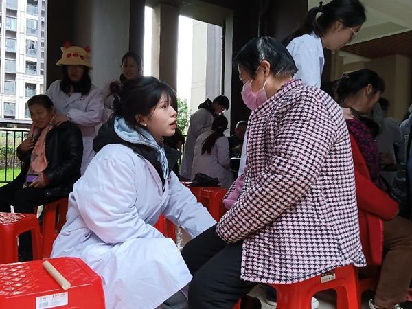 义诊现场,志愿者们通过量血压和望闻问切等方式,了解居民的身体状况,并结合学院“热敏灸”专业特色优势,为居民提供艾灸与推拿服务,有效缓解了居民的不适症状,现场的居民纷纷感叹热敏灸技术的神奇之处。此次义诊活动吸引了众多社区居民前来咨询就医,志愿者们全情投入,为社区居民提供志愿服务,提高自身专业技能的同时,让居民对中医药文化有更深入的了解。