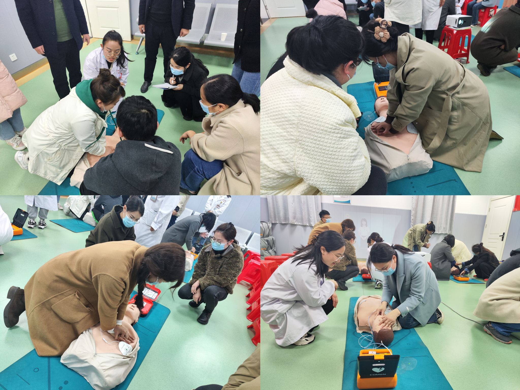 讲解员深入讲解了心脏骤停识别及原因、现场心肺复苏的意义及操作流程、自动体外除颤器(AED)的原理及操作方法等,通过模拟人示范胸外心脏按压和人工呼吸。讲解结束后,参训人员在带教老师的指导下逐一参加实操体验。