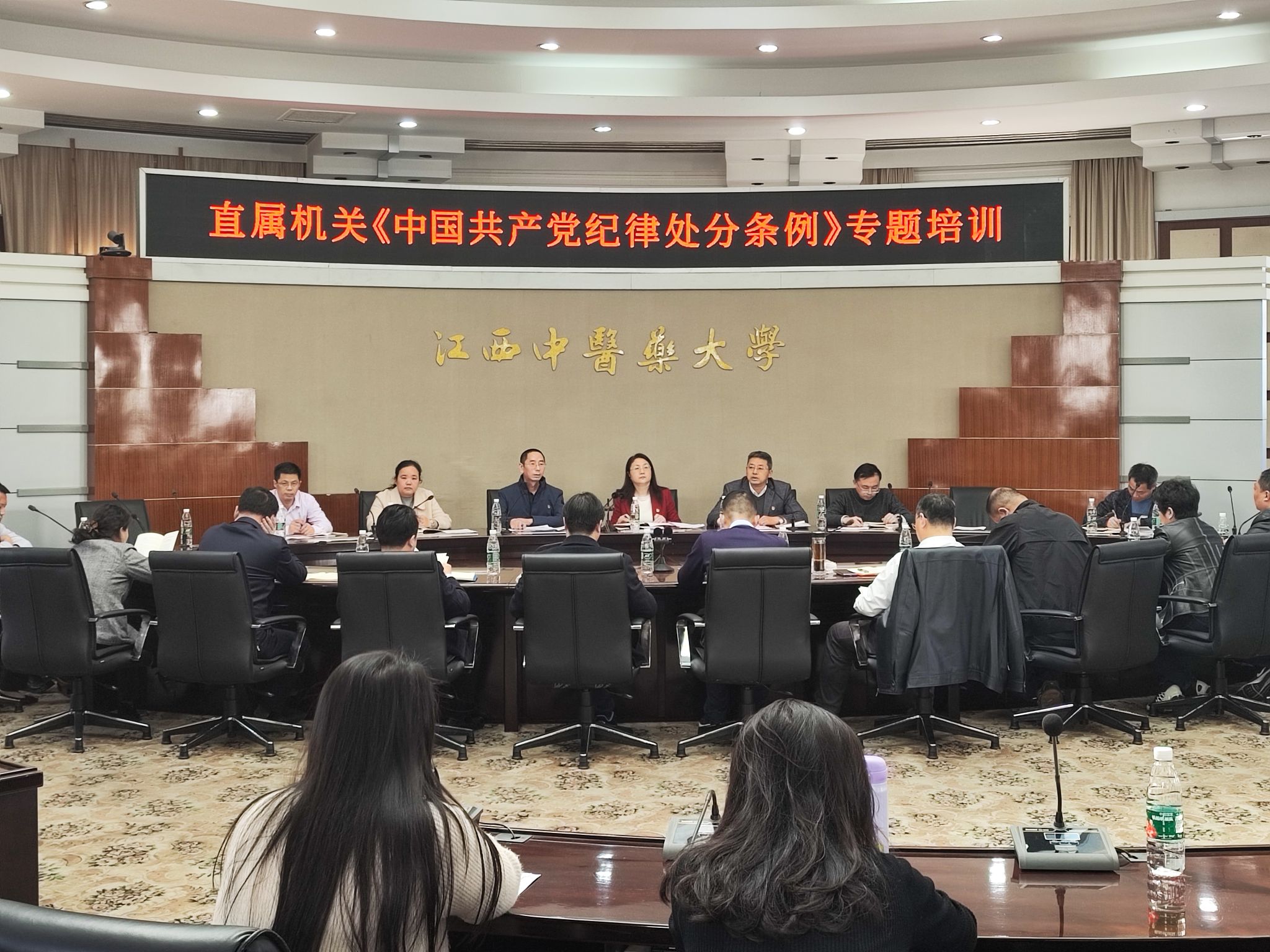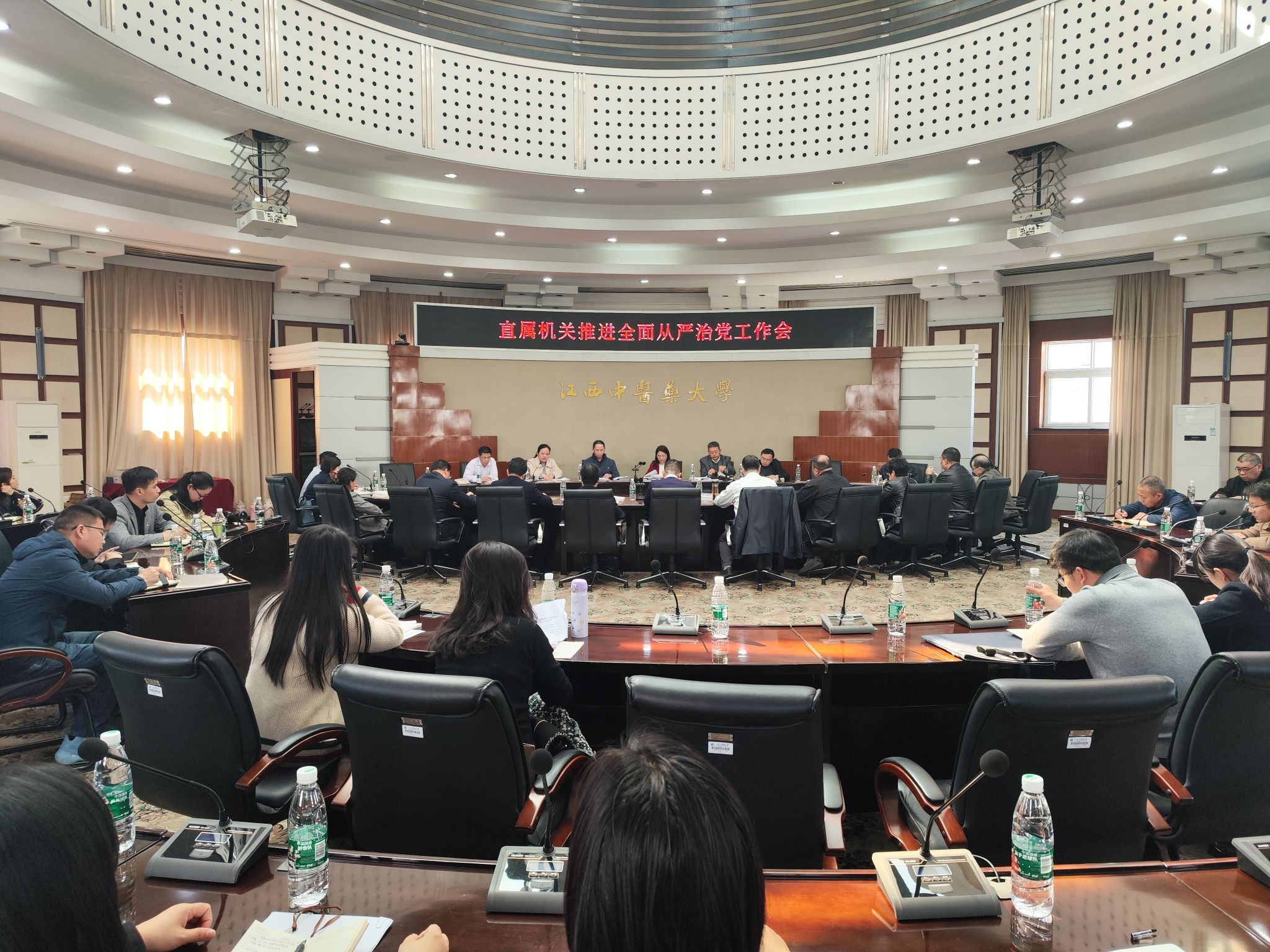会议组织学习了习近平总书记重要文章《时刻保持解决大党独有难题的清醒和坚定,把党的伟大自我革命进行到底》,开展了《中国共产党纪律处分条例》专题培训,学习了《学校全面从严治党责任书》要求和《学校纪委工作要点》,并对2024年直属机关全面从严治党工作进行了部署。