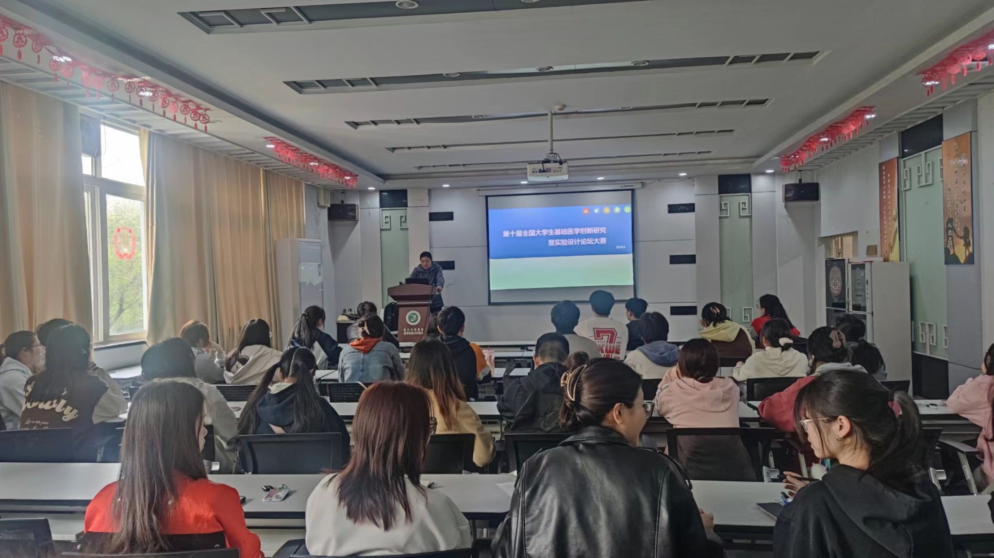 会上,中心综合办公室主任详细介绍了大赛流程,赛事安排,作品要求,作品分组以及其他注意事项,并宣传了学校相关鼓励政策。此外,邀请中心2023年第九届全国大学生基础医学创新研究实验设计大赛国奖和省奖获得者分享参赛经验与心得。据悉,2023年中心申报项目12项,荣获国家铜奖1项,省级二等奖、三等奖各1项,校级奖励7项。