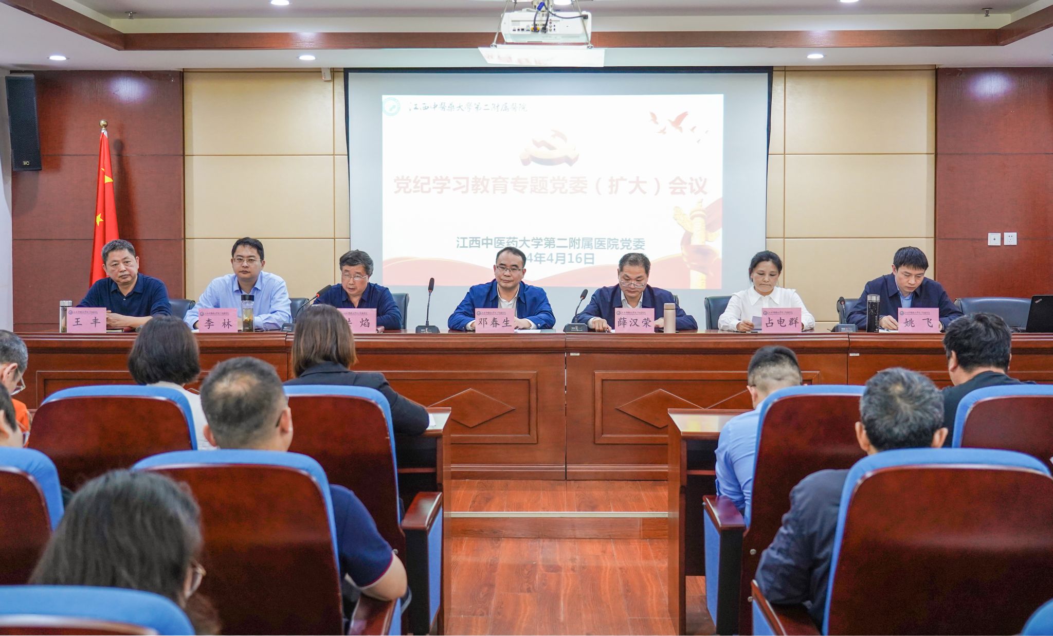 江中新闻网讯(通讯员 周春燕)4月16日下午,二附医院党委召开党纪学习教育专题党委(扩大)会议,研究部署医院党纪学习教育工作。党委书记作动员部署讲话。党委副书记、院长主持会议。