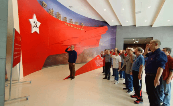 参观后,各支部党员在党旗前庄严宣誓,重温入党誓词。退休老党员纷纷表示,将以此次活动为契机,坚定听党话、跟党走的信心,严肃认真的开展党纪教育,坚定不移的配合离退休人员党总支开展加强和改进离退休人员党的各项建设工作,在新时期新征程中以更加饱满的热情为学校各项事业的发展增光添彩,发挥余热。