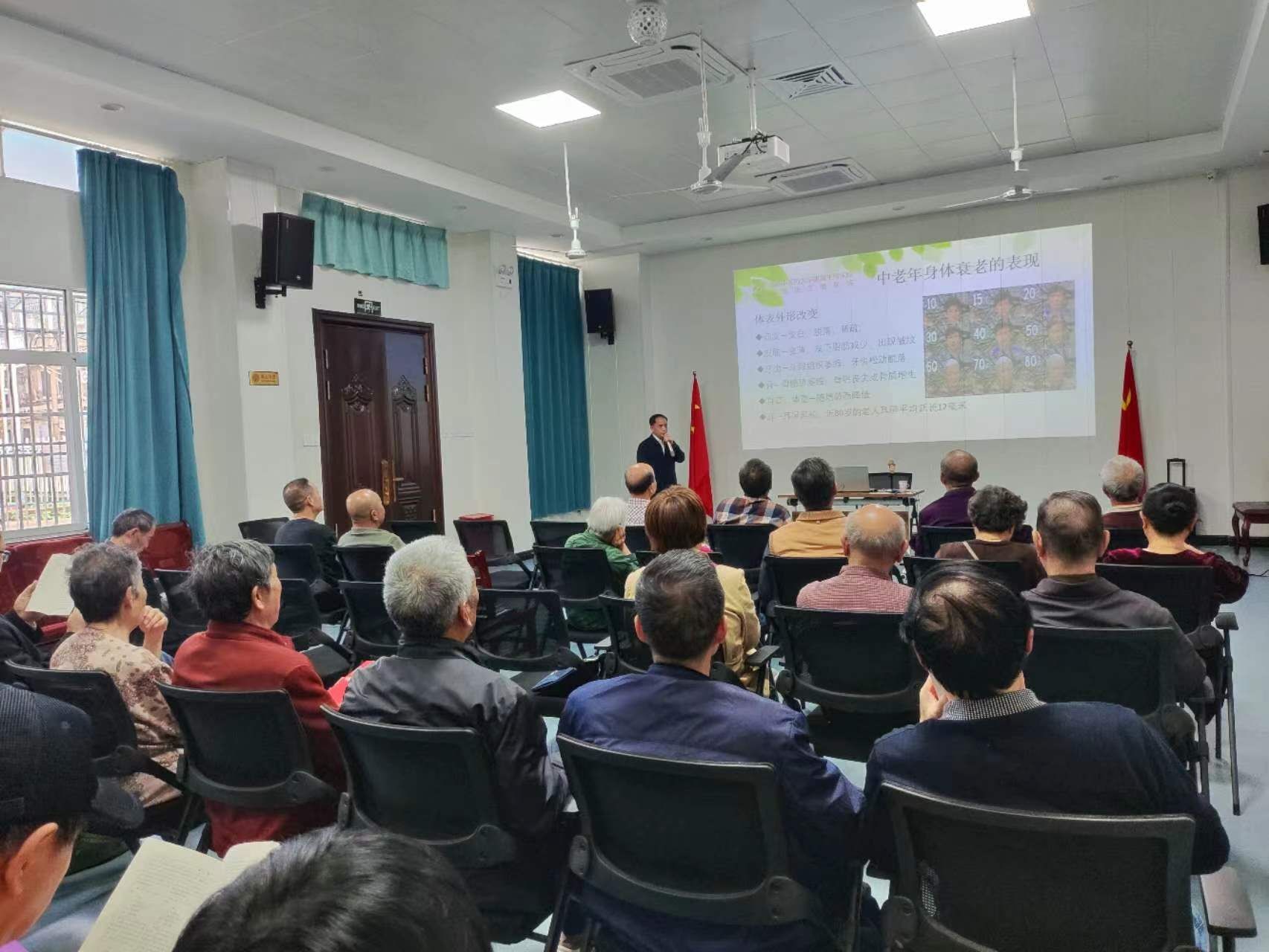 中老年养生健康知识讲座,由江西中医药大学附属生殖医院副院长熊国根教授主讲,他从中老年人的定义、养生之道、身体衰老表现三个方面,为老同志讲解如何养生、减缓衰老、预防疾病,并赠送十六字养生方法:合理膳食、适量运动、戒烟限酒、心理平衡。讲座结束后,熊国根教授还为老同志们提供一对一咨询问答服务,本次讲座得到老同志们的一致好评。