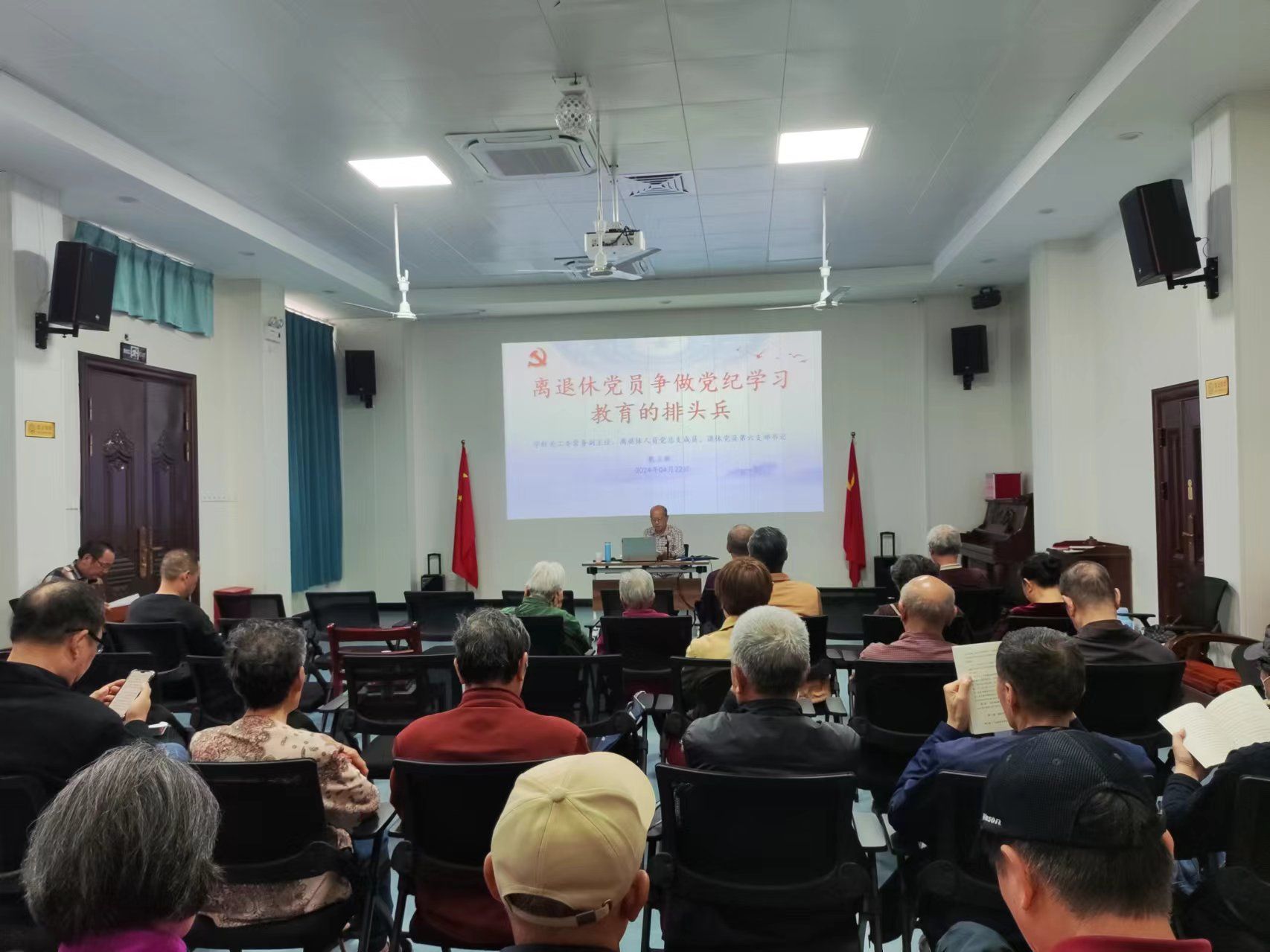 退休第六党支部书记以“离退休党员争做党纪学习教育排头兵”为题,为全体与会人员带来了一堂生动的党课。此堂党课传达了习近平总书记关于开展党纪学习教育的重要讲话和指示批示精神、《中共中央办公厅关于在全党开展党纪学习教育的通知》精神以及学校党纪学习教育的相关要求。主讲人从党纪学习教育的重要意义、主要内容等方面进行了深入解读,现场互动效果良好。