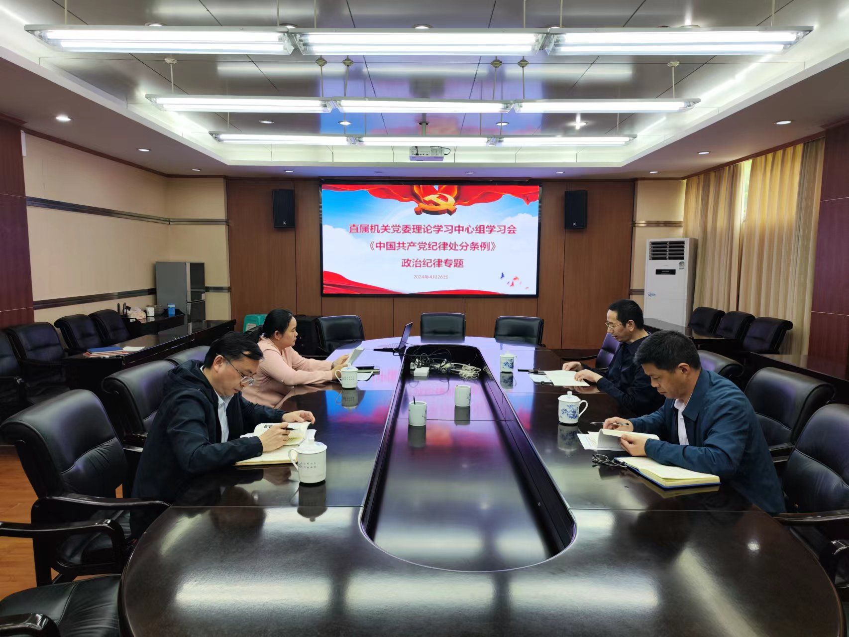 江中新闻网讯(通讯员 桂少波)4月26日上午,直属机关党委召开党委理论学习中心组学习会,专题学习《中国共产党纪律处分条例》政治纪律篇章,直属机关党委书记主持学习会,直属机关党委委员出席。