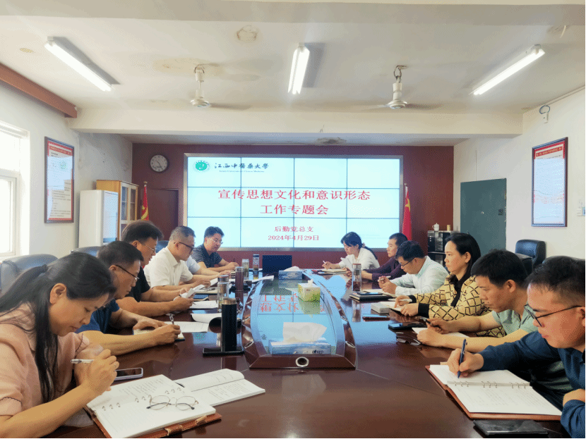 江中新闻网讯(通讯员 童丹青)4月29日,后勤召开宣传思想文化工作专题会,传达学习贯彻习近平总书记对宣传思想文化工作作出的重要指示精神以及在《求是》发表的《加强文化遗产保护传承,弘扬中华优秀传统文化》《铸牢中华民族共同体意识,推进新时代党的民族工作高质量发展》等重要指示精神,听取各党支部、各科室宣传思想文化工作情况汇报,部署相关工作。后勤领导班子成员、党支部书记、主任级以上管理人员参加会议。