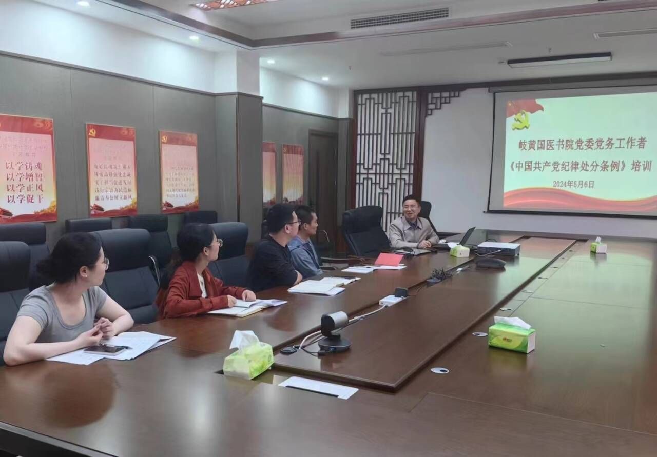 江中新闻网讯(通讯员 彭紫薇)为强化党员纪律意识,进一步严明党的纪律规矩,深入推进党纪学习教育走深走实,5月6日,岐黄国医书院开展了党务工作者《中国共产党纪律处分条例》培训,书院各支部书记、组织员和党政办工作人员参加此次培训。