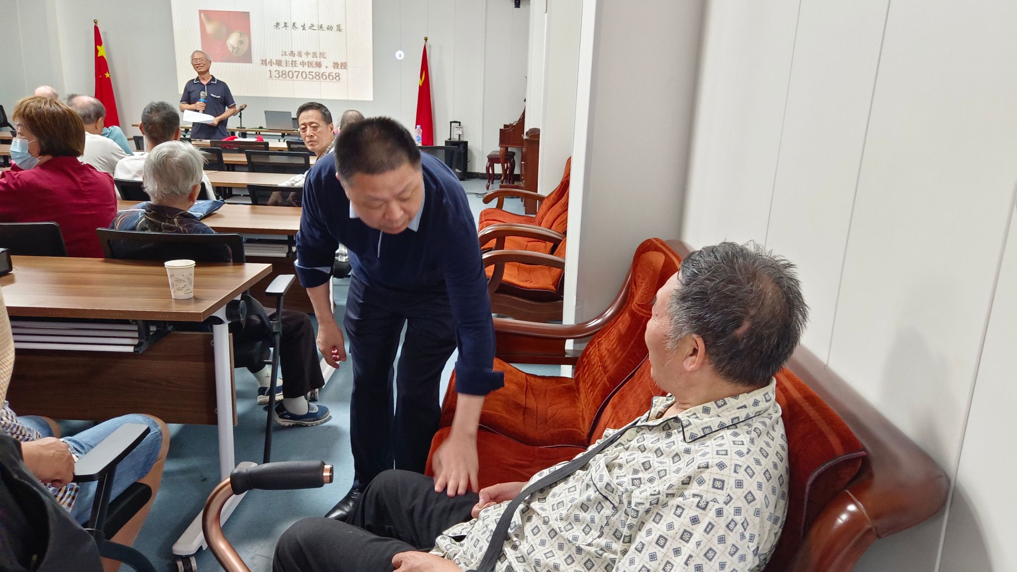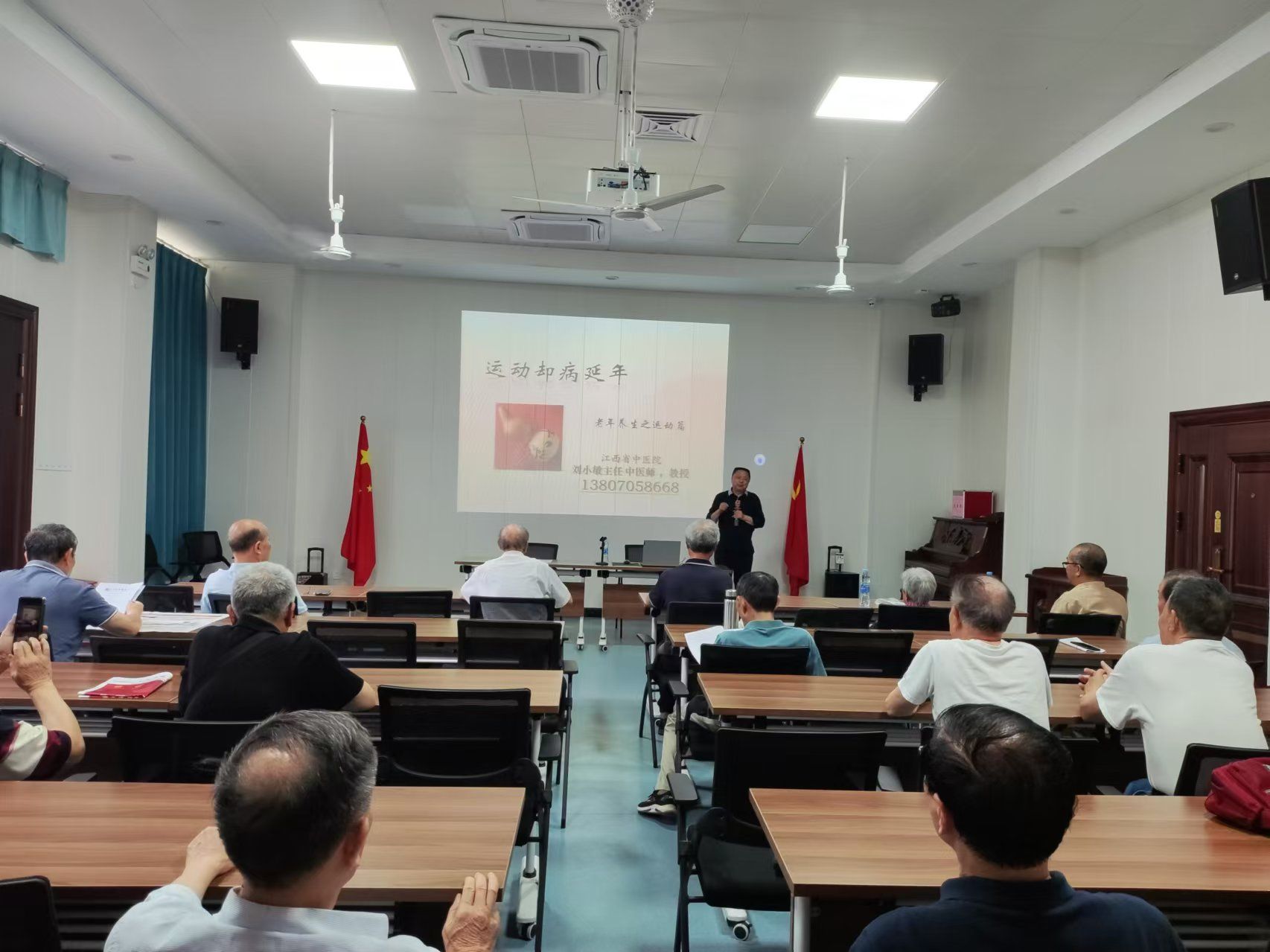 老年养生运动讲座由江西省中医院骨科主任刘小敏教授主讲,他从运动对健康的益处、运动锻炼与体力劳动的区别、老年人运动的原则、老年人常用的运动方式、老年人的运动医务监督、老年人运动注意事项、常见老年人运动性疾病的处理方法七个方面,为老同志讲解如何运动及注意事项。讲座结束后,刘教授现场为中风老人进行康复指导,本次讲座得到老同志们的交口称赞。