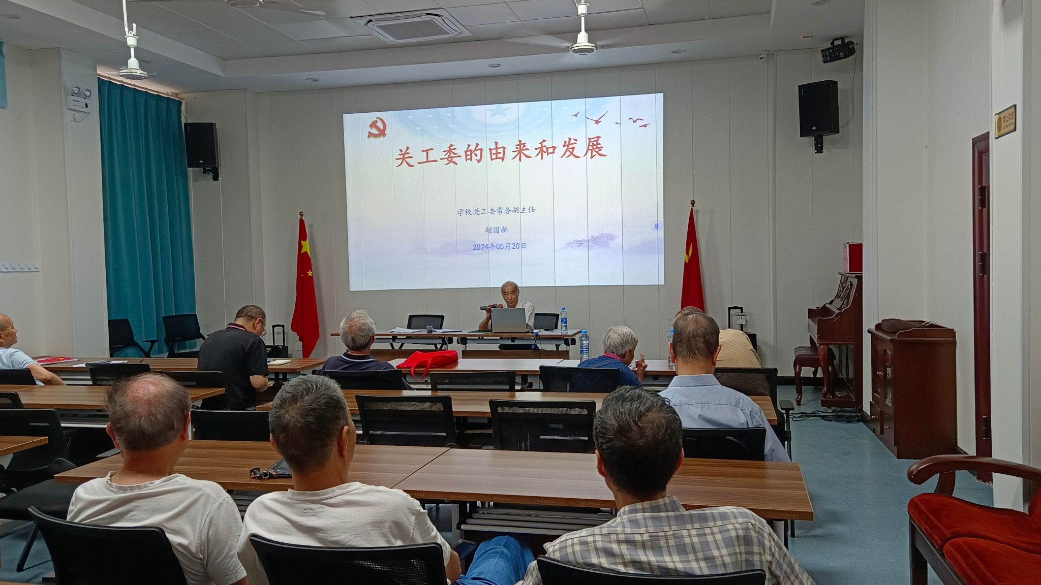 校关工委讲座由“五老”报告团成员胡国新主讲,他从关工委的发展、性质、工作任务、自身建设四个方面,用生动的案例引导广大老同志在关心下一代工作的征程中不懈奋斗,书写最美夕阳风采。