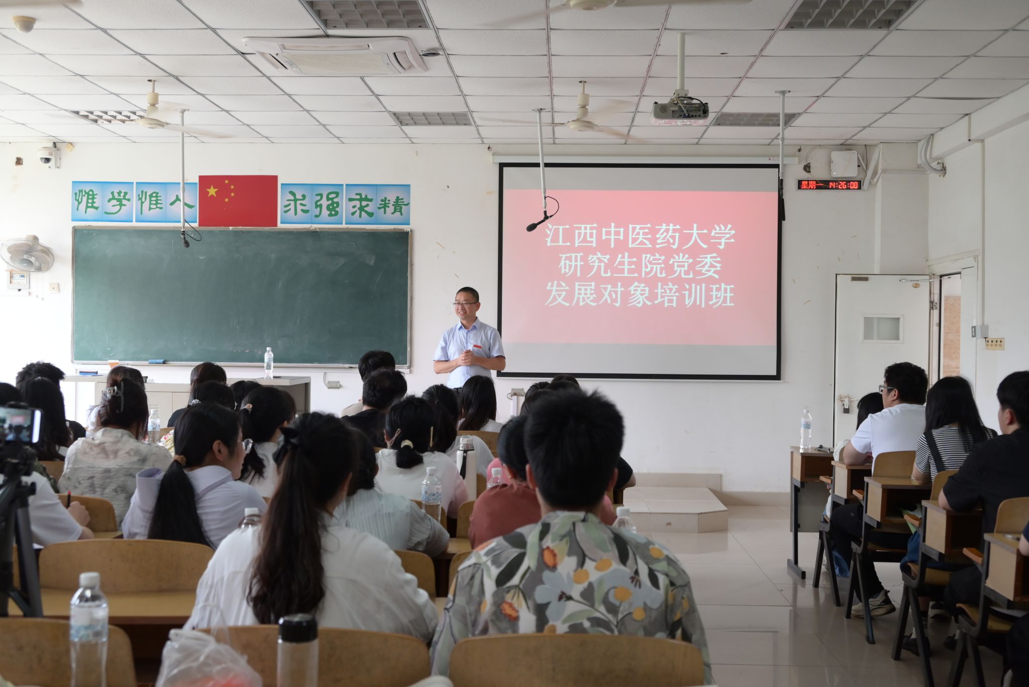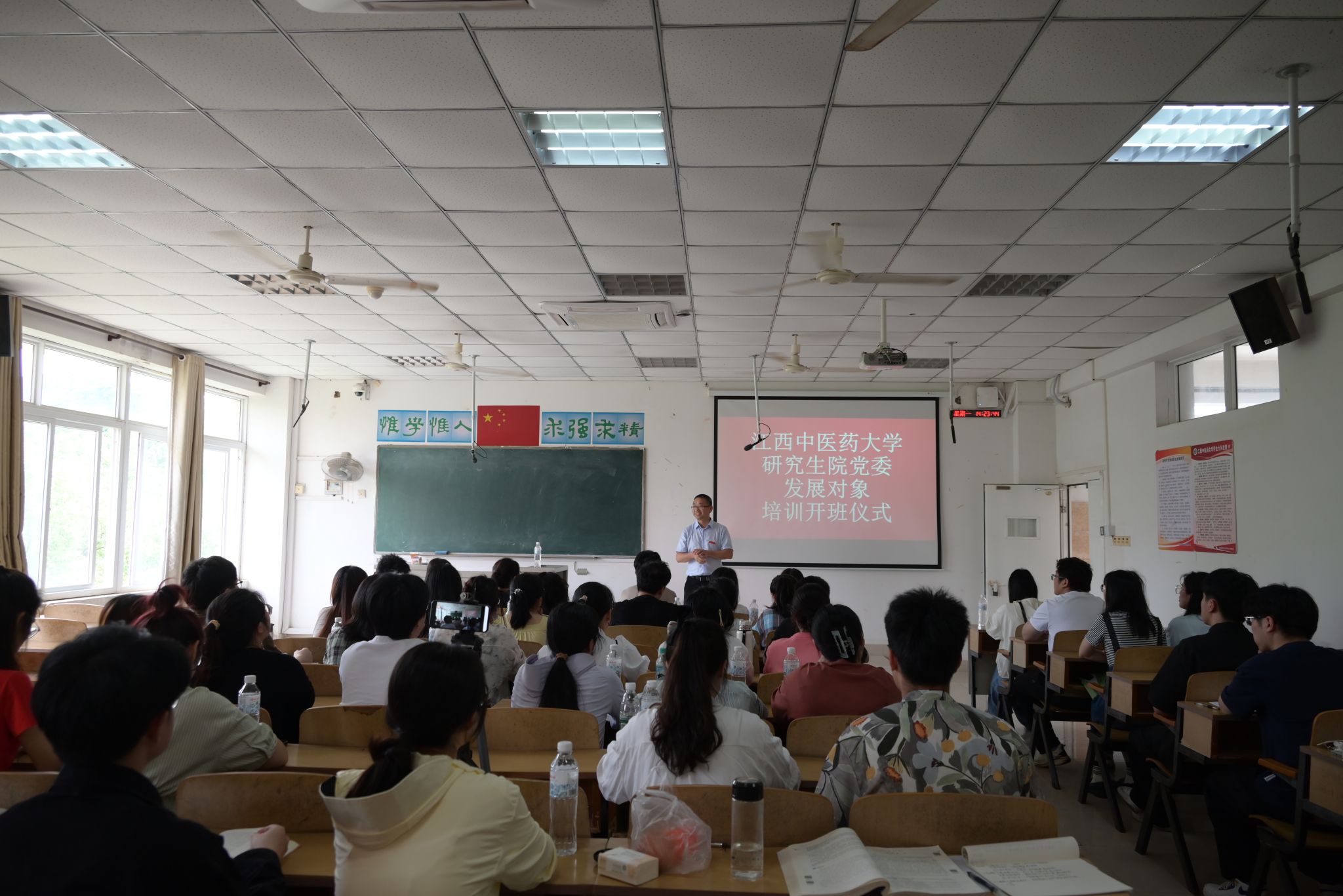 江中新闻网讯(通讯员 周星宇)按照党员发展规定和程序,5月20日,研究生院党委发展对象培训开班,院党委书记作“以严明的纪律推进党的自我革命”为主题的党纪专题党课,47名研究生发展对象参加。