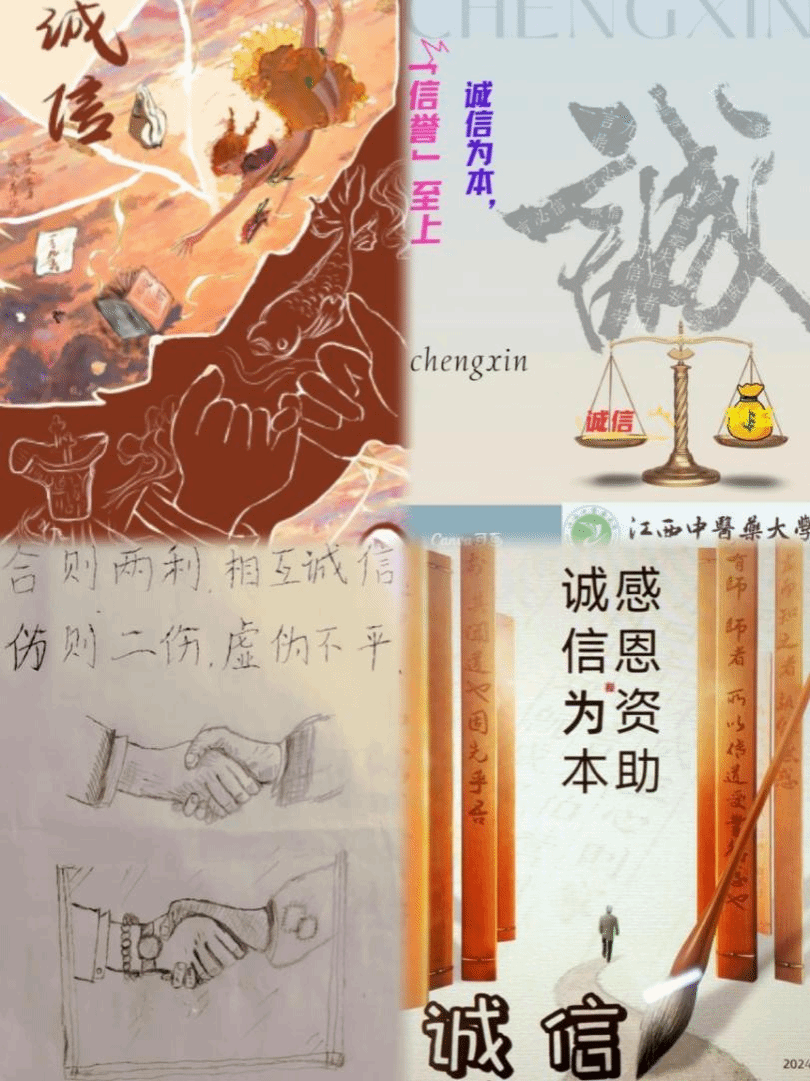 本次活动面向人文学院全体困难生,收集诚信为主题的漫画和海报。此次活动充分展现了我院学生的创作能力和积极性,同时激发大家的诚信品德和诚信精神,营造出我院积极健康的文化氛围。