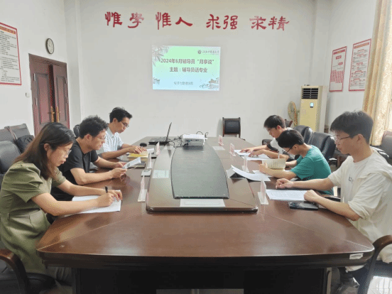 江中新闻网讯(通讯员 李超超)6月14日上午,经济与管理学院在学院一楼会议室组织开展2024年度第四次辅导员“月享说”交流活动—“辅导员话专业”,学生工作负责人及全体辅导员参加了此次交流分享活动。