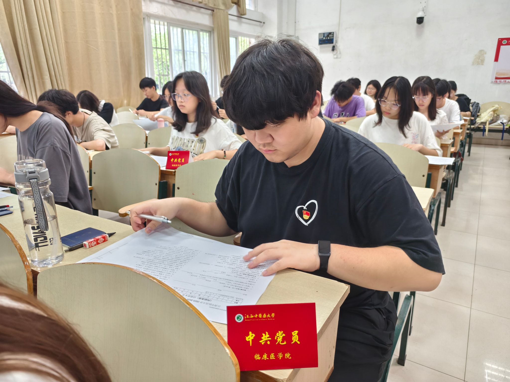 江中新闻网讯(通讯员 赖丽珍)为端正考风、严肃考纪,营造诚信考试的良好作风,充分发挥党员的先锋模范作用和示范引领作用,在本学期期末考试期间,临床医学院学生党员诚信亮牌考试,充分发挥示范引领和影响辐射作用,积极营造风清气正的考场环境。