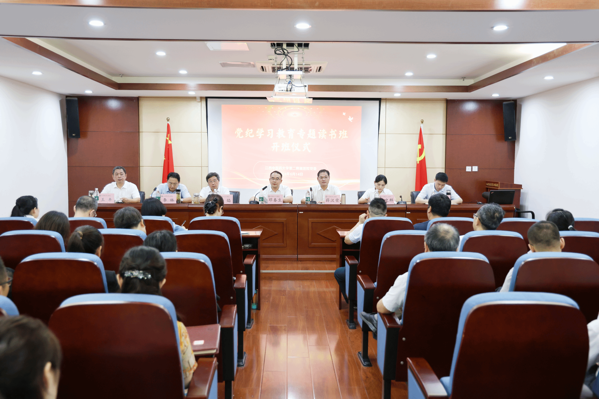 本次读书班采取专题辅导、自学、现场警示教育和研讨交流相结合方式进行。开班仪式上,二附医院党委负责人作了开班动员讲话,并以“以高质量党纪学习教育推进医院各项事业高质量发展”为题讲授专题党课。