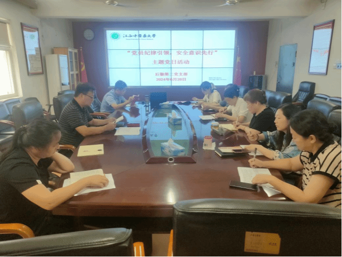 江中新闻网讯(通讯员 谭述骏)6月20日,后勤第二党支部开展“党员纪律引领,安全意识先行”主题党日活动。会议集中学习了《习近平总书记关于安全生产方面的重要论述》、《习近平总书记关于意识形态方面的重要论述》、《中国共产党纪律处分条例》第三章、第四章、第五章等内容。