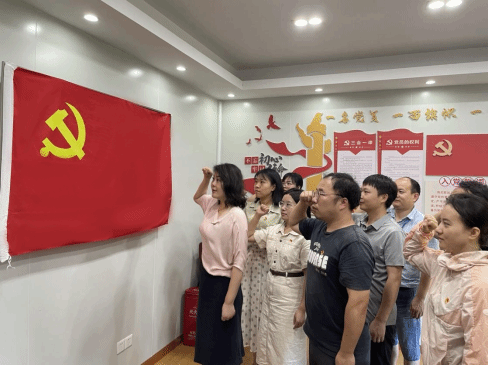 随后,全体党员高举右拳,面对鲜红的党旗,重温入党誓词,重拾入党记忆。庄严肃穆,字字铿锵。入党誓词一字千钧,激励党员牢记党的根本宗旨,巩固党员意识,在新征程上永葆初心、勇担使命、履职尽责、终身践行入党誓词。