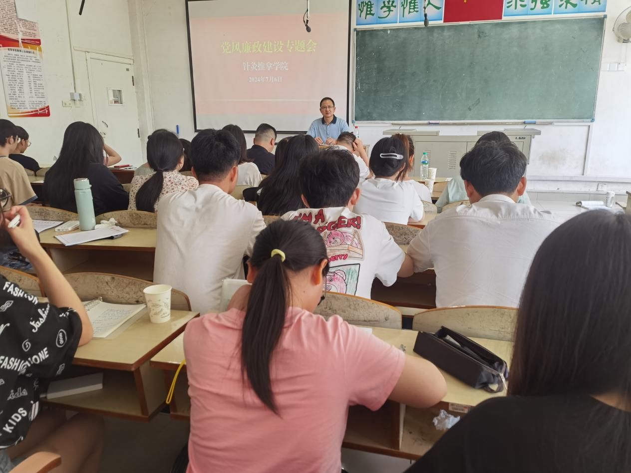 江中新闻网讯(通讯员 周世华 彭师琴)7月6日,针灸推拿学院在明志楼2204教室召开党风廉政建设专题会。学院党委负责人、学生工作负责人、辅导员和2025届全体毕业实习生党员参加。