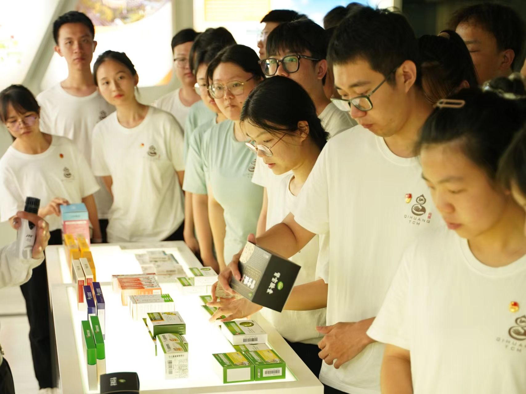 制剂车间二楼展台,一件件包装精致的中成药、保健品等琳琅满目。队员们在讲解员的邀请下品尝了健胃消食片和乳酸菌素片,让成员们真正地感受中医药的魅力。