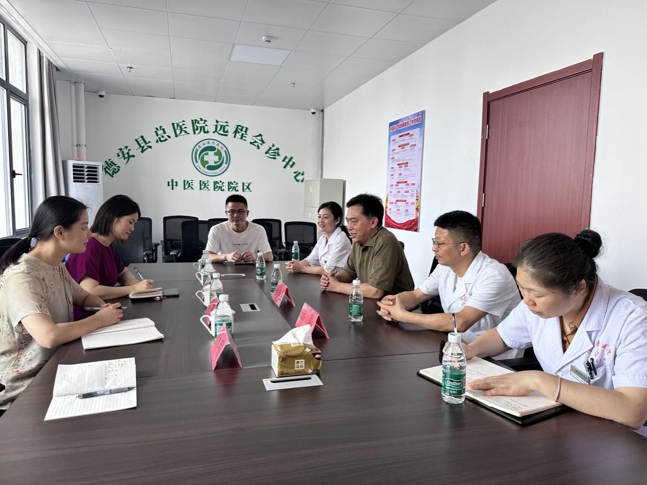 在德安县人民医院,医院相关负责人详细介绍了医院的基本建制、科室特色、人才队伍建设等情况。针灸推拿学院与计算机学院相关负责人分别就学校基本情况和学院的专业设置、人才培养、学生实践、就业需求等方面进行了沟通交流。双方就医疗信息化、针灸推拿学、康复治疗学等人才需求进行了深入探讨。在德安县中医院,中医院负责人详细介绍了医院在中医药传承创新、医疗服务能力提升、特色专科建设等方面的做法和成效。学院与医院就人才培养、实习实践、岗位需求等方面进行了深入交流,并实地考察了解了医院的工作环境、设施设备及针灸推拿康复治疗病区等情况。