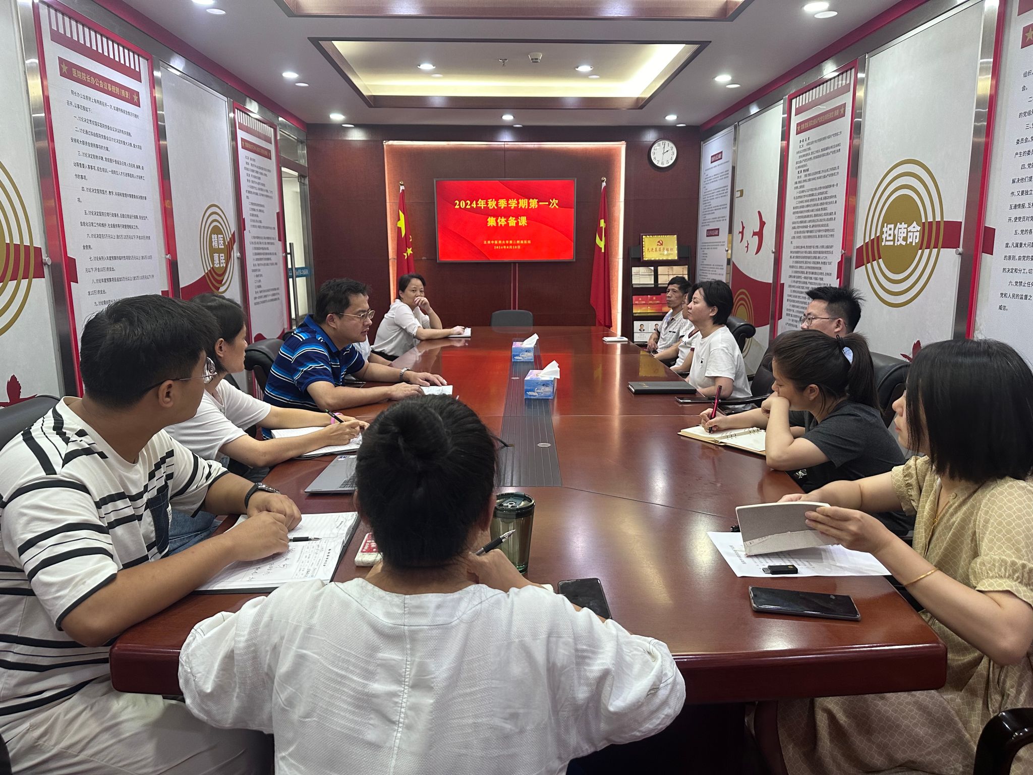 江中新闻网讯(通讯员 彭志鹏)为全面做好新学期教学准备,提高课堂教学质量,8月29日,二附医院组织开展了2024年秋季开学前第一次集体备课工作。