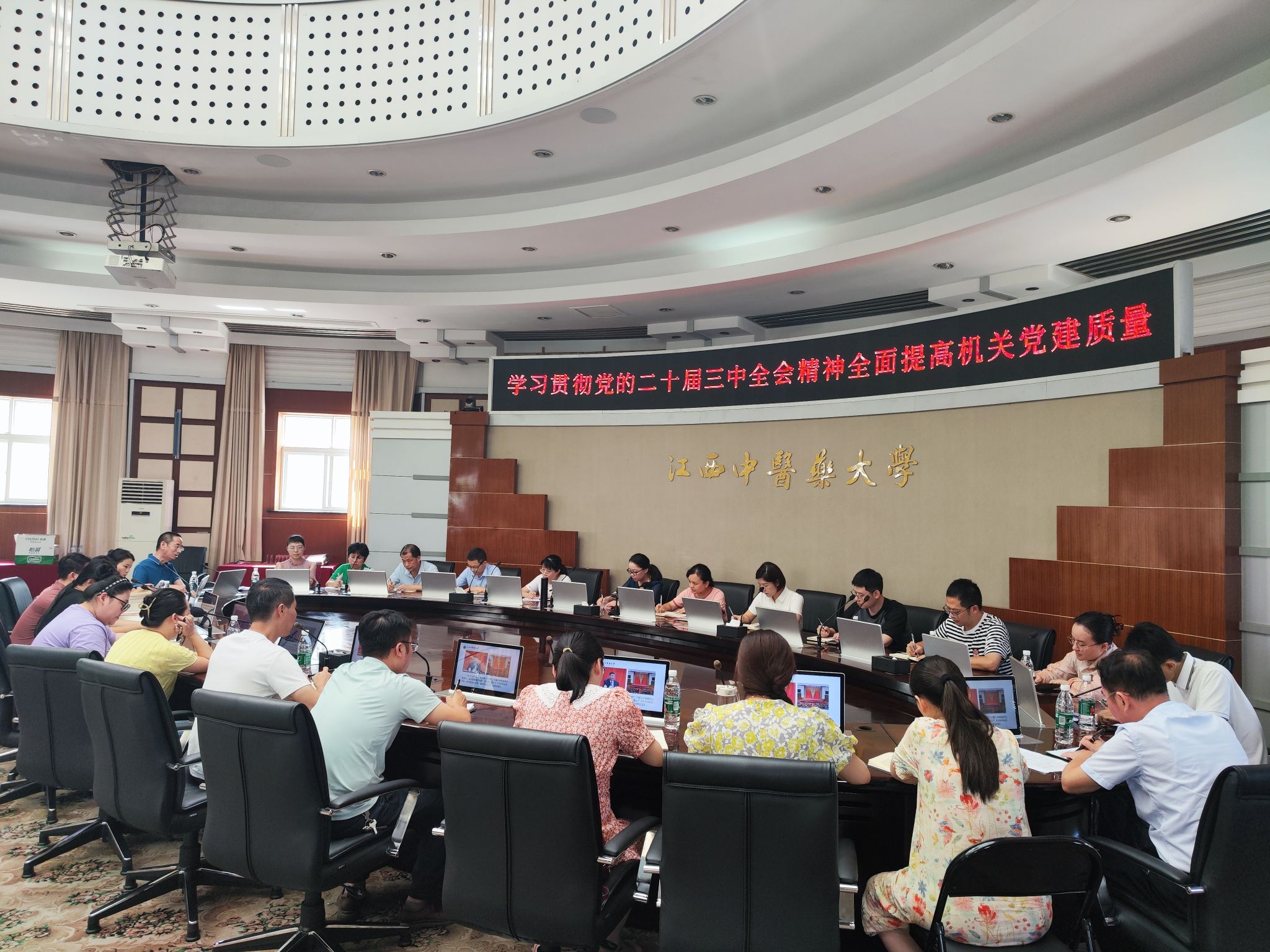 宣讲会后,直属机关党委召开党支部工作例会,组织学习了习近平总书记在全国教育大会上的重要讲话精神,学习了《江西中医药大学党员干部师生网络行为负面清单》《中国共产党不合格党员组织处置办法》,听取了各党支部党员干部职工思想动态情况汇报。