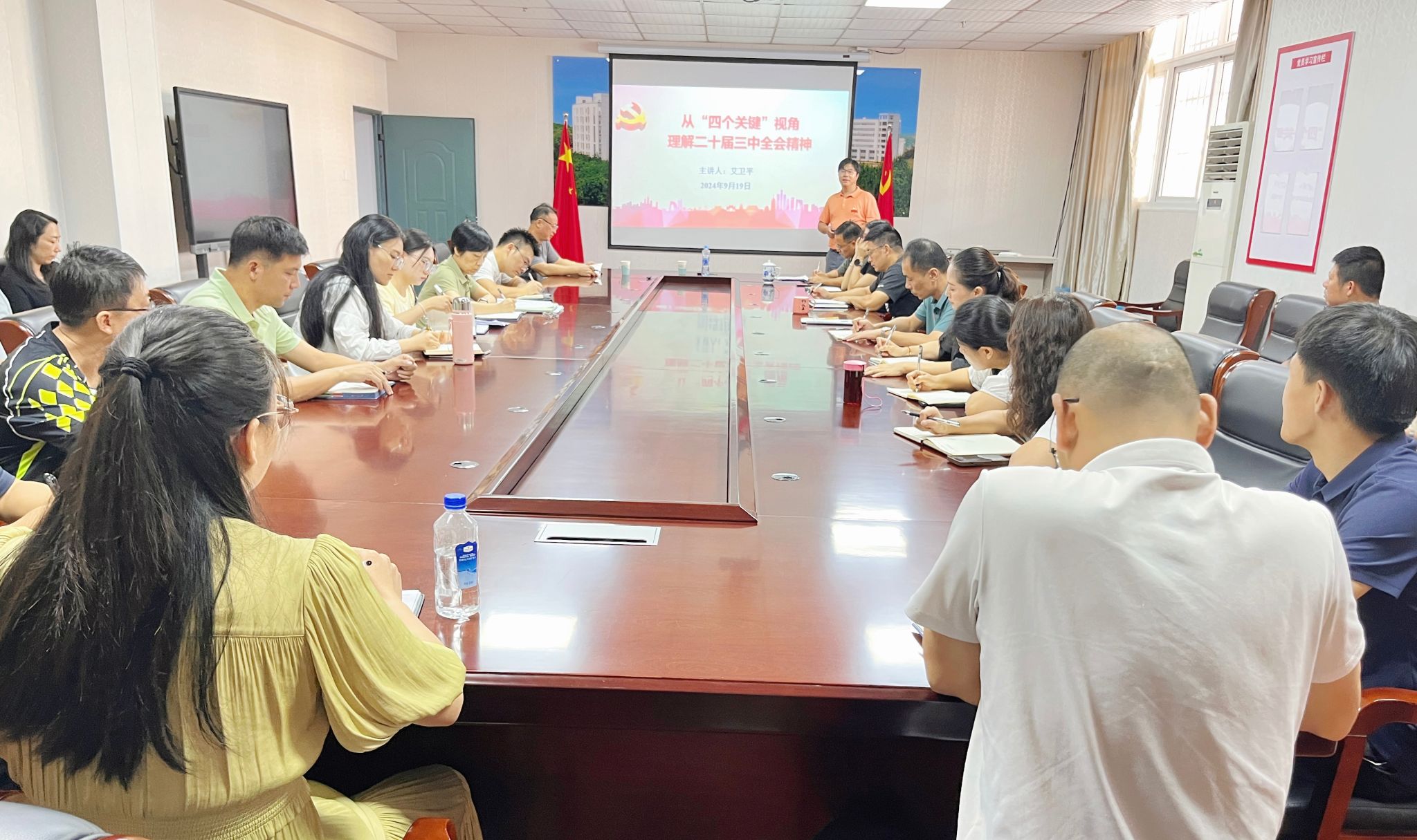 艾卫平从历史发展的关键时期、奋进征程的关键会议、着力解决的关键问题、强国复兴的关键一跃这“四个关键”视角带领大家理解把握党的二十届三中全会精神,深刻认识党的二十届三中全会的重要意义、全面准确理解《决定》提出的进一步全面深化改革重大举措、严格落实党中央关于贯彻落实全会精神的基本要求等方面深入宣讲党的二十届三中全会精神。