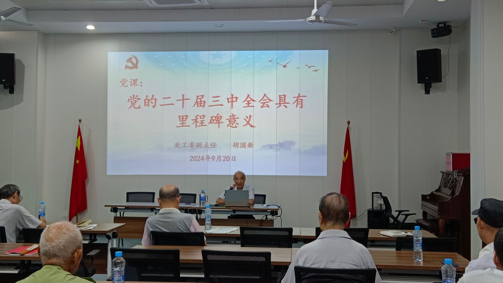 为进一步推动党的二十届三中全会入脑入心,全省教育系统“五老”报告团成员胡国新以《党的二十届三中全会具有里程碑意义》为题,为全体老同志讲了一堂生动的党课,帮助老同志深入学习领悟党的二十届三中全会的重大意义。党课结束后,老同志们深入探讨了全会精神,并分享了各自的学习感悟。