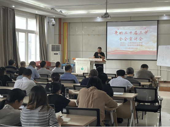 江中新闻网讯(通讯员 周志芳)为全面深入学习领会党的二十届三中全会精神,9月20日下午,学校党委委员、统战部部长薛铁瑛在中医学院宣讲党的二十届三中全会精神。中医学院领导班子、全体教职工参加了此次宣讲会。